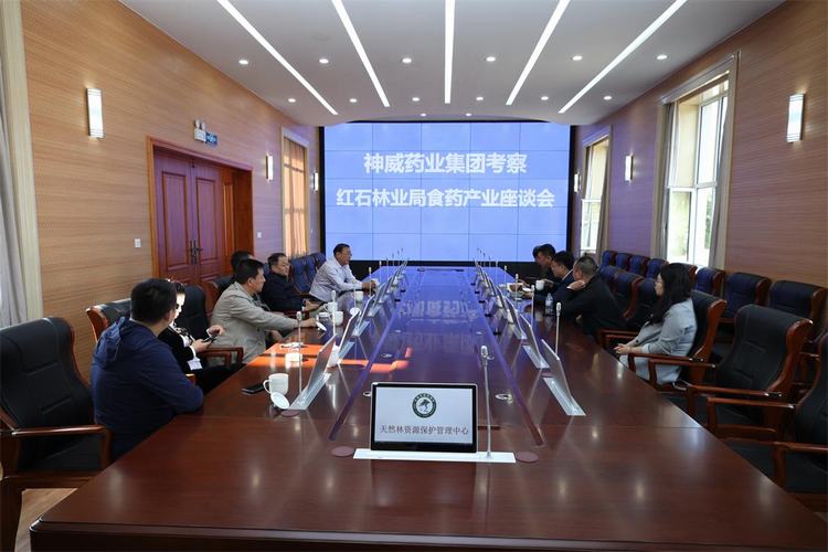 考察组观看了专题片《转型发展中的红石林业局》,对企业基本情况有了初步了解,双方还就中草药种植技术、未来合作方向展开了深入交流。