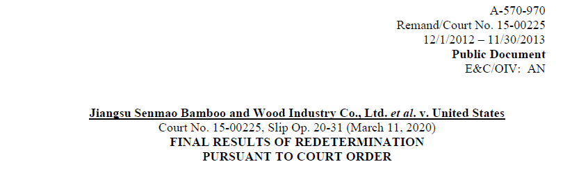 2020年5月8日,美国商务部将美对华木地板反倾销调查第二轮复审终裁的裁决进行修正,即针对江苏森茂竹木业有限公司(以下简称“江苏森茂”)等就终裁提起诉讼的企业,将其在2012年12月1日至2013年11月30日期间的反倾销税率从13.74%调减至3.92%。尽管涉案时间远在7年前,但江苏森茂提起诉讼并获得成功的案例意义重大,充分体现部分中国企业已在国际贸易中成长起来了,地板外贸企业艰辛维权之路已见曙光。