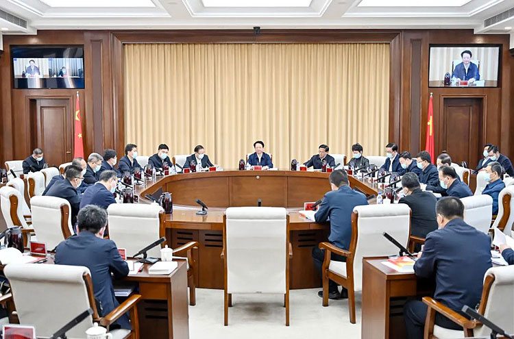 11月15日,省委书记景俊海主持召开省委理论学习中心组集体学习会,集中学习贯彻党的二十大精神。邹乃硕 摄