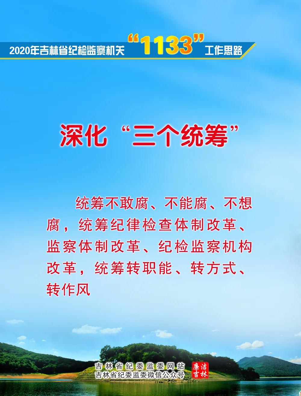 【开栏的话】 省纪委十一届五次全会提出谋划和推进纪检监察工作的“1133”工作思路,即明确“一个目标”,为决胜全面建成小康社会、决战脱贫攻坚、加快实现新时代吉林全面振兴全方位振兴提供坚强保障;贯穿“一条主线”,推动新时代吉林纪检监察工作高质量发展;突出“三项重点”,做实监督职责、健全监督体系、提升监督能力;深化“三个统筹”,就是统筹不敢腐、不能腐、不想腐,统筹纪律检查体制改革、监察体制改革和纪检监察机构改革,统筹转职能、转方式、转作风。 为落实好2020年重点任务,省纪委监委新媒体着力打造宣传“两个维护”落实、推动工作、教育干部、引导舆论“四个平台”,推出省纪委十一届五次全会解读系列文章、贯彻落实全会精神“做实监督职责”“健全监督体系”“提升监督能力”等系列稿件,跟进反映全省纪检监察机关贯彻落实全会精神的具体举措、成效,推动吉林纪检监察工作高质量发展。敬请期待。