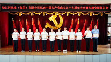 九十九年栉风沐雨,九十九年朝乾夕惕,九十九年砥砺前行。为歌颂九十九年来党的丰功伟绩,表彰先进,激励公司广大干部职工积极投身公司振兴崛起高质量发展的建设中,6月29日上午,松林公司党委在机关六楼会议室举行纪念中国共产党成立九十九周年大会暨专题党课报告会。松林公司党委书记黄吉文出席会议,并以“当好新时代的答卷人”为题作党课报告。会议由松林公司党委副书记、纪委书记赵宝才主持,松林公司领导班子成员、党委委员、副处级以上党员领导干部、党务工作者、机关所有党员、松江河森林公安分局党委和离退休管理处党总支所属各支部书记以及公司党委预备党员和转正一年内的党员共计300余人参加会议。