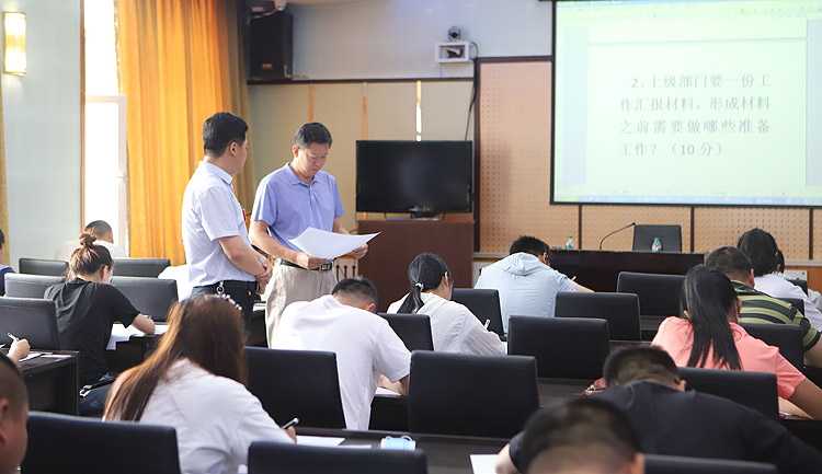 8月14日进行了笔试考核,本次考试坚持以公平公正为前提,以公开民主为方向,以严格的程序,规范的操作为指导,采用“公开选拔、竞争上岗”的方式选拔优秀人才。考试开始前十分钟由党委书记、局长赵伟亲自命题,试卷包括简答、公文写作、发挥题以及论述题,题目包含“介绍为何都夸家乡好”、“论述当前存在升学宴违规违纪现象”等,发人深思、贴近实际。