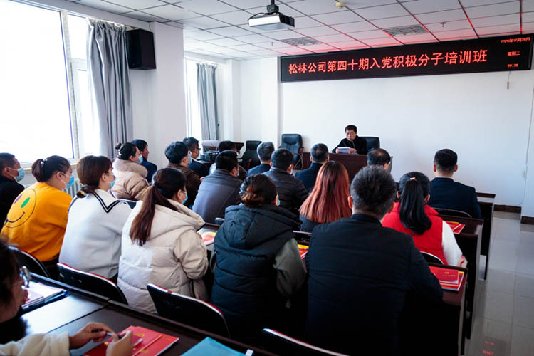 为全面加强对入党积极分子的培训工作,进一步提高入党积极分子的思想政治素质和政治理论水平,明确入党目的,端正入党动机,10月28日至30日,松林公司在综合楼一楼举行第40期入党积极分子培训班,机关、各基层单位的50名入党积极分子参加了开班仪式。