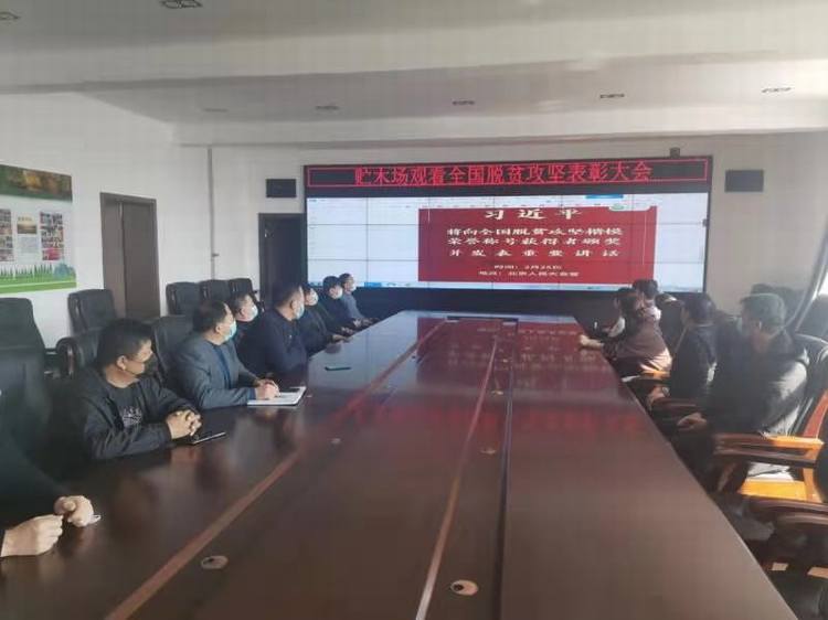 2021年2月25日,全国脱贫攻坚总结表彰大会在北京人民大会堂隆重举行。中共中央总书记、国家主席、中央军委主席习近平向全国脱贫攻坚楷模荣誉称号获得者颁奖并发表重要讲话。大会对全国脱贫攻坚先进个人、先进集体进行了表彰。吉林森工集团按照吉林省扶贫宣传教育中心及国资委党群部门的有关要求,认真组织机关及所属单位党员干部观看了总结表彰大会,共计10162名党员干部观看了现场直播。
