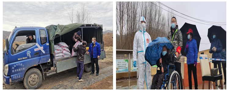 集团公司驻大星村第一书记董林生(右一)代表集团公司向村民捐赠口罩、猪肉等防疫和生活物资 驻村工作队按照集团公司党委的部署要求,积极配合镇政府、村委会开展防疫工作,累计核酸19(轮)次,检测4000余人次。为确保春耕有序进行,还积极帮助村民购置化肥、种子,装卸生产物资。
