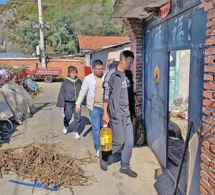 在国庆、中秋及全国第七个扶贫日即将到来之际, 为切实传递企业关怀,真正使靖宇县花园口镇胜利村9户建档立卡贫困户度过一个欢乐祥和的节日。9月27日,松林公司机关各支部包保责任人,深入包保扶贫村,走访慰问结对帮扶对象,为他们送去大米、食用油等物资,并送上节日的问候和美好的祝福。 在靖宇县花园口镇胜利村,慰问组与结对帮扶贫困户进行面对面、心贴心地交流,耐心细致地询问每户贫困户在生产生活、就医治病等方面存在哪些困难?需要帮扶责任人帮助解决哪些问题?同时,慰问组鼓励贫困户要坚定脱贫致富的信心,要坚信在党和政府的带领下,通过自己勤劳的双手一定能够创造出美好幸福的生活,早日实现脱贫致富。