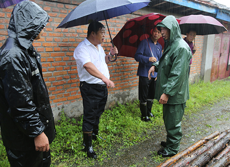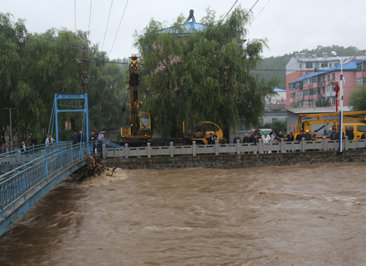 亲临现场、抗洪抢险 24日下午,因连续大强度降雨,多处地段堤坝损毁,河水肆无忌惮的冲刷着河堤两侧,人民群众财产安全受到极大的威胁。汽运处后家属房堤坝冲毁近30米,二小上侧家属房屋内水深近50厘米,黑松沟三门市小桥被河水漫过,便民桥处水流冲下的树根造成淤堵,危险无处不在。就在此时,湾沟林业局党委号召广大党员干部要身先士卒,充分发挥战斗堡垒作用,组织全局干部员工奋力抗洪一线。局长、党委书记刘春禄,资产专员赵波,党委副书记、工会主席张圣坤,副局长王玉彬、于永涛、张光东分别带领抢险人员时刻不离河流堤坝和水毁地段现场,掌握汛情,关注群众生命财产安全。
