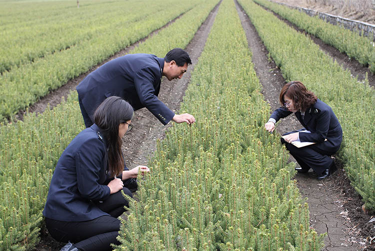 为严防有害生物的传播蔓延,加强苗木的产地检疫,近日,临江林业局森防站从苗木源头抓起,对种苗繁育中心春季出圃的造林苗木和绿化苗木进行产地检疫检查,保证了绿化苗木质量。 今春种苗繁育中心出圃的造林苗木主要有红松、云杉、水曲柳、胡桃楸、斑克松、杨树等,绿化苗木主要有樱桃、山杏、紫叶李、榆树、小叶丁香、女贞、桃叶卫矛等。森防站工作人员严格按照《吉林省森林植物检疫实施办法》,深入圃地现场,对今春的出圃苗木开展产地检疫检查,共检疫出圃苗木360万株。经检疫合格后,签发了《产地检疫合格证》,苗木产地检疫率为100%。同时要求苗木调运时,必须凭《产地检疫合格证》办理《植物检疫证书》,并具有林业部门签发的《苗木标签》和《苗木质量合格证》,方可在省内调运;对出省调运的苗木,还要有调入地出具的植物检疫要求书,方可办理调运检疫手续