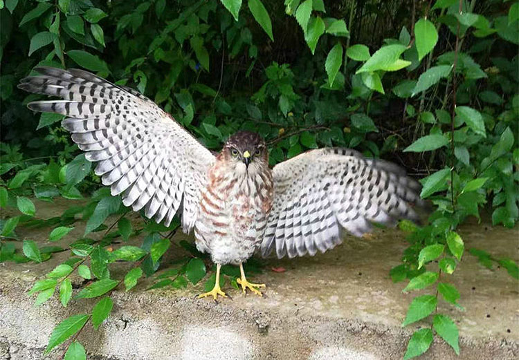 鸟鹰学名红隼,多栖息于山地和旷野中,善于在飞行中追捕猎物,以猎食时有翱翔习性而著名,是隼科的小型猛禽之一,因数量较少,属国家二级保护动物。 经过简单检查,大家发现这只鸟鹰腿部受伤,鼻孔流血,初步判断是在飞行过程中撞到树干并摔落致伤。王立兴马上带人把小鸟鹰带回林场,对其伤口进行处理包扎。 经过一周的精心照料,受伤鸟鹰已经可以正常站立,并开始尝试飞行,已具备放生条件。8月26日,临江林业局组织柳树河林场人员将其放归大自然。 |