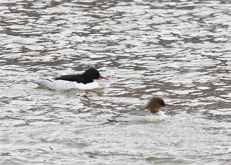 “竹外桃花三两枝,春江水暖鸭先知”。3月24日,红石林业局森林生态保护处动物保护工作人员,在辖区红石电厂坝下再次观测到2只有着“鸟中大熊猫”之称的中华秋沙鸭回归当地。目前,红石林业局辖区水域范围内中华秋沙鸭种群数量已经达到20余只。