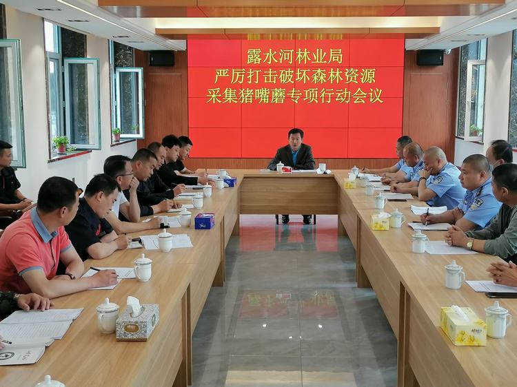 会上传达了露水河林业局“严厉打击破坏森林资源采集猪嘴蘑”专项行动方案。各部门负责人根据工作实际,交流了经验,研判了管护形势。会议针对不法分子冬季盗伐柞木、夏季取猪嘴蘑的违法行为,对专项行动提出了具体要求:一是各单位要密切配合、形成合力,继续对重点林班、重点地段加大管护力度和巡护密度,严厉打击滥伐林木和以盈利性破坏森林资源行为;二是各林场、各中队要做到互通有无、全面排查,深入林场、村屯细致摸排冬季入山滥伐柞木,夏季捡取猪嘴蘑谋取利益的违法行为线索,确定打击重点;三是各管护站严格路栏放置标准,详查入山人员及车辆,对捡取猪嘴蘑和采摘野生猕猴桃、山葡萄等经济林果,数量较大的人员进行信息登记,并及时上报森林公安分局进行实地踏查,固定捡取地点,为打击涉林违法犯罪行为提供有力依据;四是要充分发挥职能作用,不定期、不定时的组成联合检查组,对农贸市场进行联合检查;五是要落实长效机制,坚决禁止走过场、一阵风现象,要常抓不懈,持续保持高压严打态势;六是采取灵活多样宣传方式,利用横幅、宣传单等媒介,不断扩大宣传覆盖面,营造良好的社会舆论氛围。