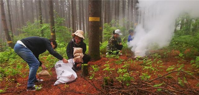 在烟剂防治防治作业过程中,工作人员严格按照《杀虫烟剂防治红松球果害虫技术规程》要求,在无风和微风的晴朗天气,于早4点之前来到作业区施放烟剂,利用大气的逆温层,使烟雾在林间弥漫停留,对红松球果害虫达到熏杀的效果。