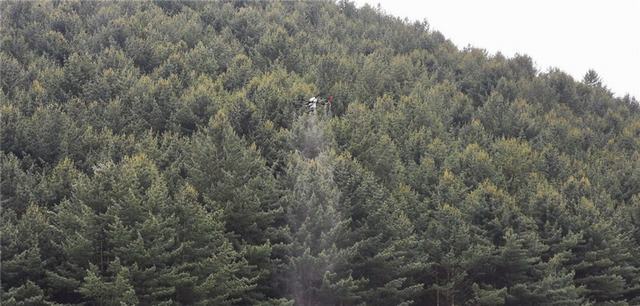 对于红松球果害虫药物防治,临江林业局一直采取无人机喷药防治为主,地面烟剂防治为辅的方式,无人机喷药防治主要针对人工作业难以实施的红松面积大、树木高、地势复杂的林分,无人机一个机次载药量20公斤,可防治10亩林地;烟剂防治主要针对红松树种组成占3-5成,交通不便、山高林密的林区。