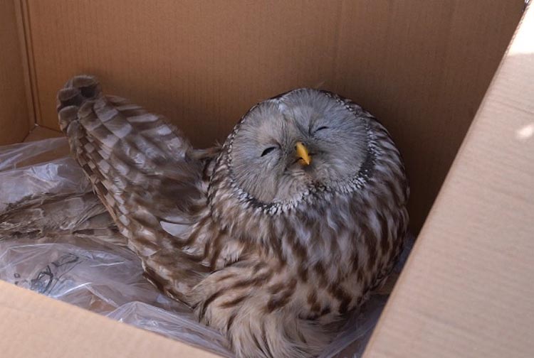 近年随着生态保护成效初显,林鸮种群数量呈增长趋势,这只受伤的林鸮可能是在夜间活动时不小心误入居民区,撞到了窗玻璃受伤,又落到离退休职工管理中心院内。经沟通协调,受伤的长尾林鸮被送至临江市林业局母树林林场野生动物救助站进行专业救助治疗,待康复后,重新放归大自然。