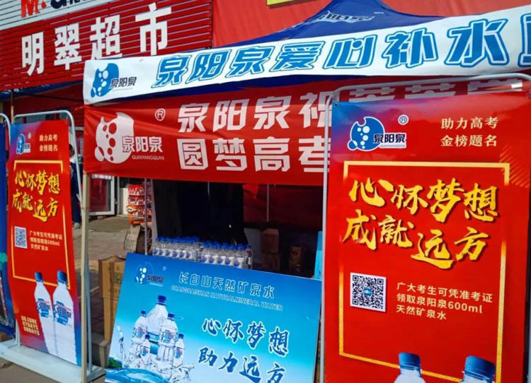 “春播秋收十二载,一朝收获终有成” 为了给考生们创造轻松舒适的考试环境 吉林森工集团泉阳泉饮品有限公司 “泉阳泉爱心补水站”服务感恩开启 为了梦想,多少年寒窗苦读 等待的就是这一刻 愿我们泉阳泉人的行动 能助考生一臂之力