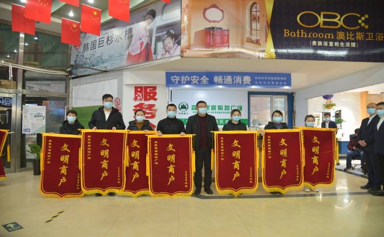 此次活动共评选出鸿运建材、晨阳水漆、鹰瓷卫浴等13户文明商户。吉林市市场监督管理局昌邑分局副局长王永刚和吉林制材厂集团总经理王庆丰分别为获得荣誉的“文明商户”颁发锦旗。文明商户在活动中承诺,会积极响应市场监督管理局和吉林制材厂的管理号召,以合格的产品、优质的服务回报江城百姓。