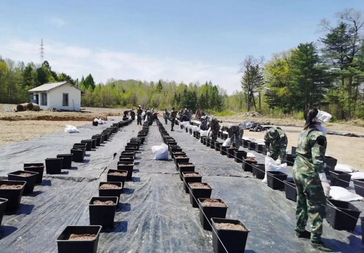 基地结合长白山地区气候、水纹等特征,采用国内外先进的无土栽培技术和水肥一体化实施方案,利用吉林农大成熟的越冬防寒专利技术,选用优质品种,计划一期用地50亩,定植蓝莓25000株。700余名干部职工将利用4天时间完成现阶段栽培工作。
