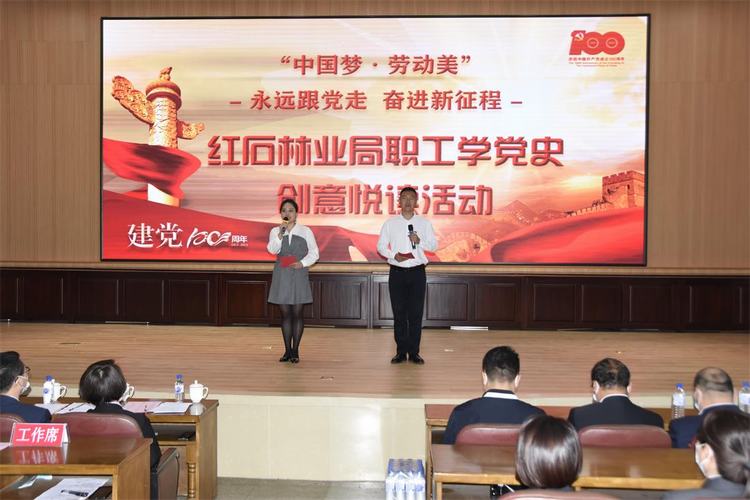 5月18日,红石林业局机关会议厅内座无虚席,不断传来热烈的掌声,“中国梦·劳动美——永远跟党走 奋进新征程”职工学党史创意悦读活动诗文朗诵演讲大赛正在这里举行。参赛选手们以其铿锵有力的节奏,磅礴恢宏的气势,充沛饱满的感情,自信大方的形象展示了红林干部职工的精神风貌和家国情怀,让聆听者仿佛置身于艰苦卓绝的革命峥嵘岁月,感受到了红色经典文化魅力。